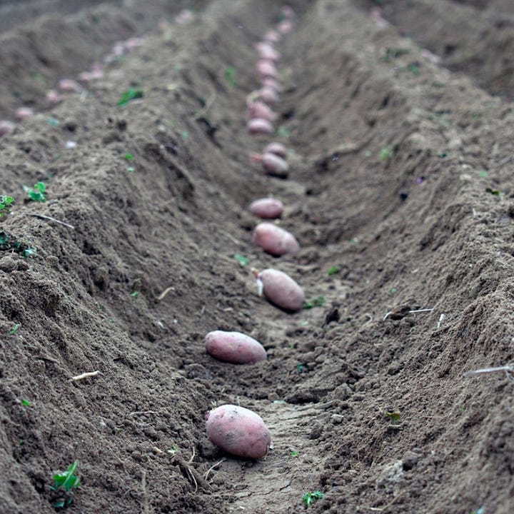 Last year, my potatoes turned out quite small and the yield was very low. Some of that result was in my control and some outside - the weather - particularly how much rain we get to irrigate those fields, was well beyond my control. What was in my control were two critical errors I made as the season began, and I knew it. I did not manage to hill the potatoes shortly after planting. Then I gave up, or gave in as I watched my failure unfold and let the weeds ‘win’.